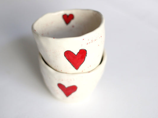Stoc epuizatSet de două căni din ceramică cu inimă roșie