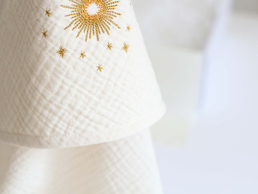 Stoc epuizatPăturică din muselină cu motiv brodat și capișon