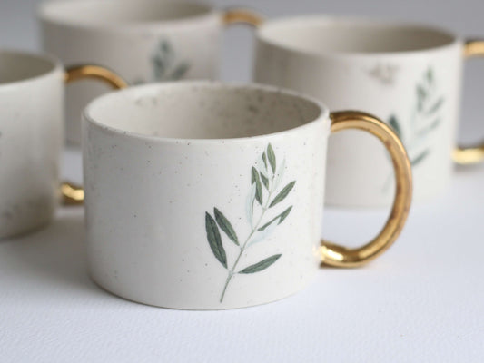 Ceașcă din porțelan cu ilustrație botanică - crenguță de măslin