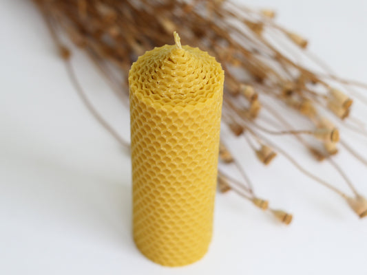 Set lumânare colorată din ceară de albine și suport ceramic cu toartă
