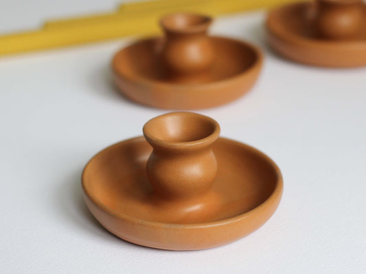 Set trei lumânari din ceară de albine și suport Teracota tip sfeșnic - lumânări galben natur